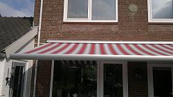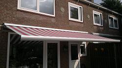 Het Terrasso en Millennium3B knikarmscherm Beide type terraszonneschermen zijn toppers onder de 3B knikarmzonneschermen. Zijn uiterst fraai van vormgeving, in gesloten toestand vormen zij één compact geheel, en is het een sieraad aan de gevel van uw woning. Door de standaard montage van een "derde buis" is het mogelijk om deze type knikarmschermen, te voorzien van één of meer knikarmen, waardoor het knikarmscherm windvaster wordt, en het doek beter gespannen blijft. Ook zijn beide type knikarmschermen leverbaar in zéér grote maten, met een uitval van 200, 250, 300 en 350cm. Ook is er een grote keuze uit de diverse kleuren.