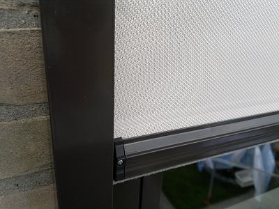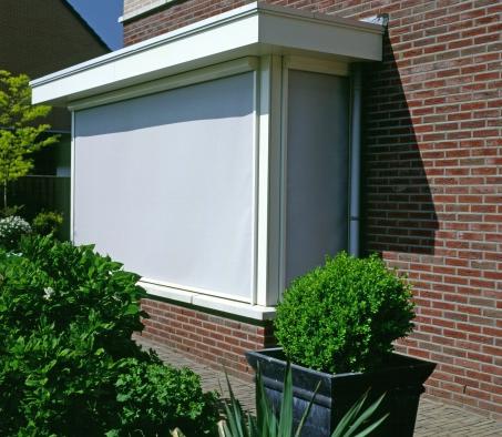 SCREENS De screen is gemaakt van een hoogwaardig aluminium profiel, de vormgeving van de diverse profielen is met zorg ontwikkeld, hierbij is rekening gehouden met de vraag naar de diverse bedienmogelijkheden die er voor de screen verkrijgbaar zijn, waardoor het mogelijk is geworden, dat de bediening "onzichtbaar" in de screen gemonteerd wordt. Het glasvezeldoek van de screen, wordt met behulp van de onderlat tussen de geleiders bewogen, om het glasvezeldoek strak, en de screen windvast te maken, is de onderlat verzwaard. De screen is leverbaar met de traditionele rechthoekige bovenbak, of een moderne ronde bovenbak. Windvast Ook zijn er windvaste screens leverbaar. Dit is een luxe uitvoering van de normale screen. Het doek wordt in alle posities strak gehouden doordat er koorden door de geleiders lopen die het doek continu op spanning houden. Ook in situaties waar veel wind is hangen de doeken strak en kan het niet uit de geleiders waaien. De windvaste screens zijn alleen leverbaar met afgeschuinde voorkappen. Zip-screen De nieuwste uitvoering is een zip-screen. Deze hebben aan de zijkanten van het doek een rits. Het voordeel is dat er geen kieren meer tussen doek en geleiders zitten.