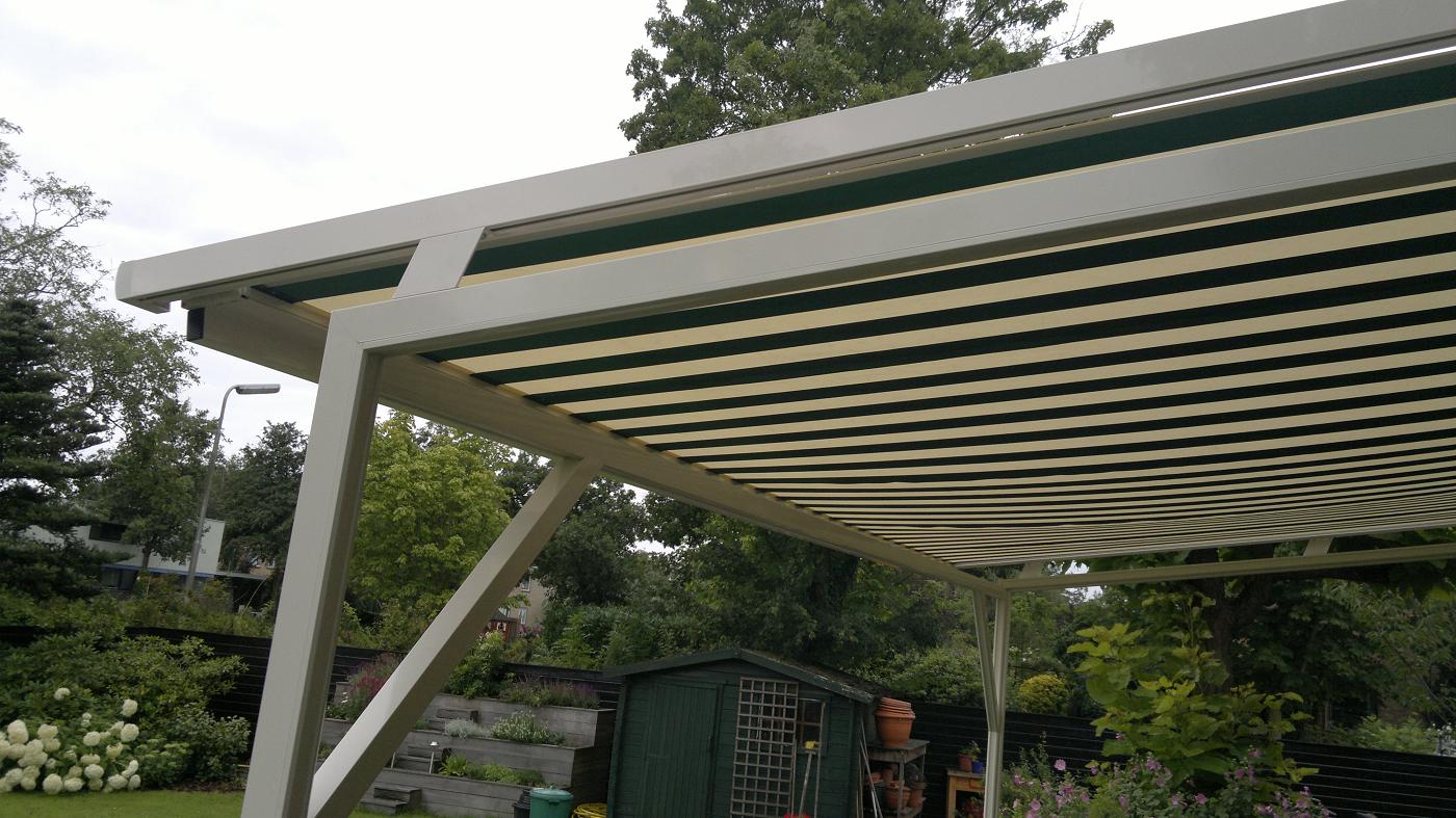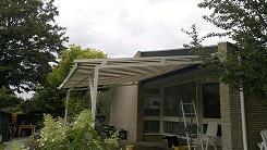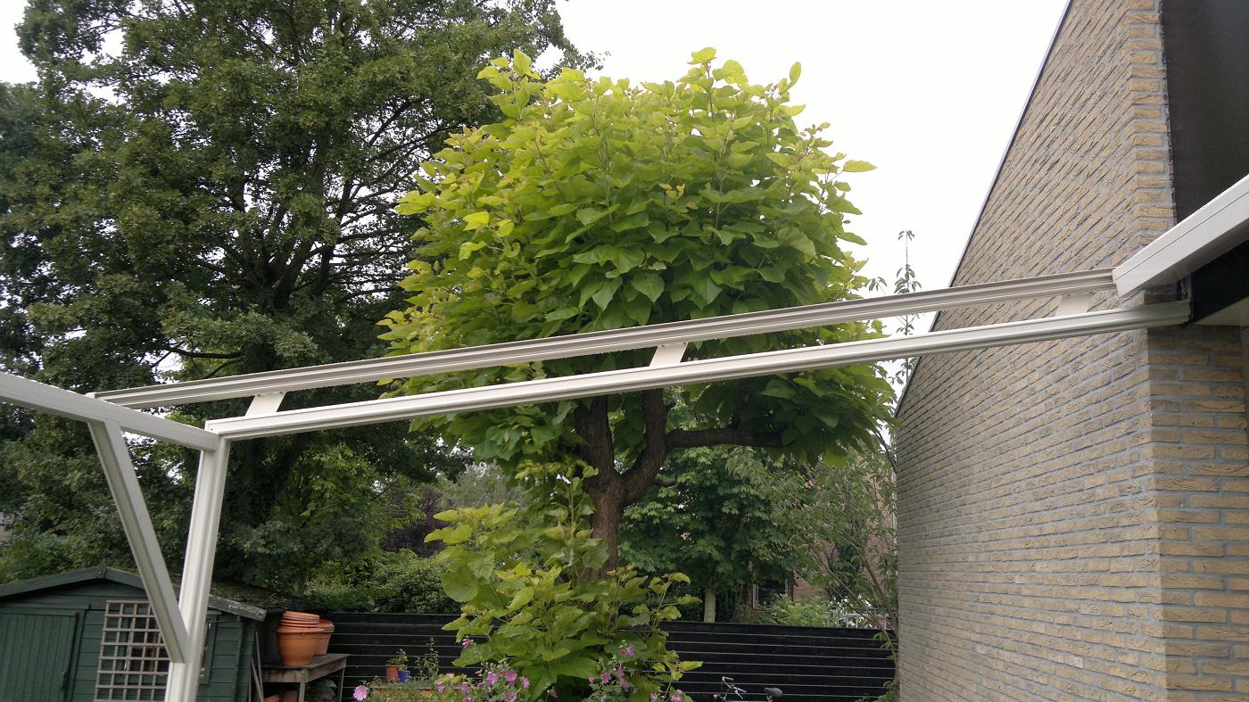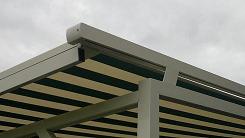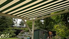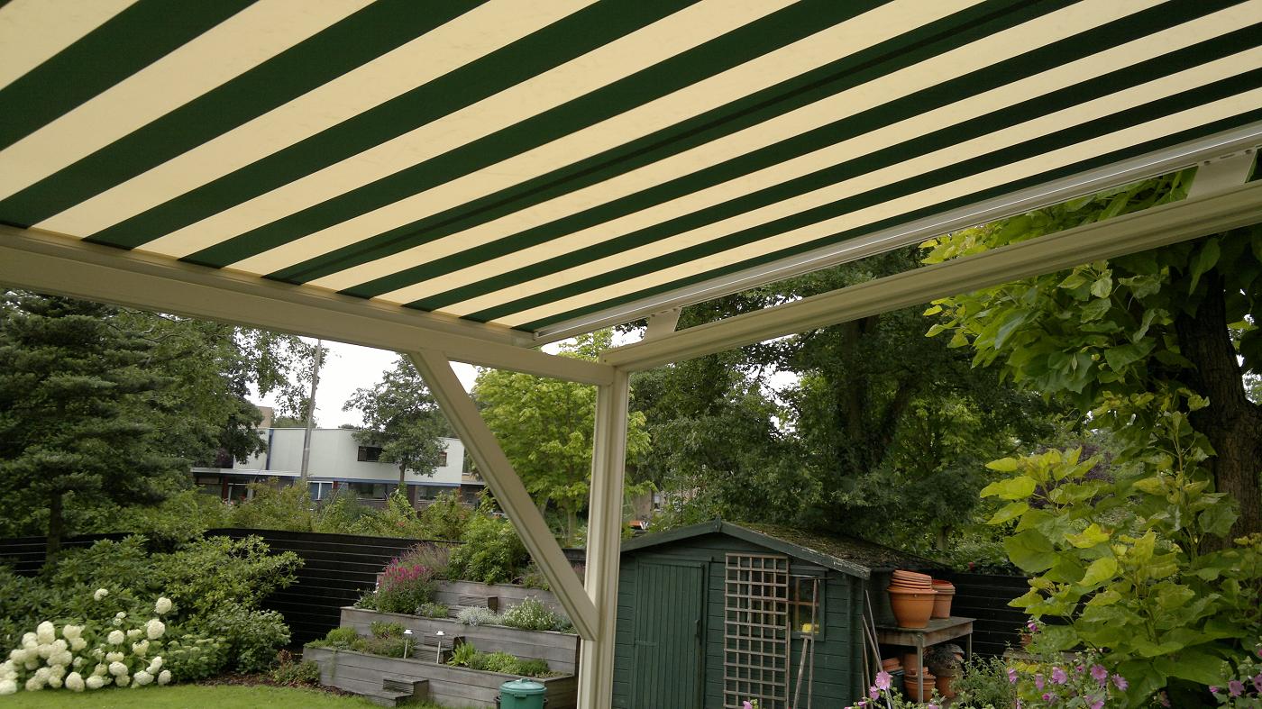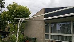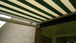 SERREDAKZONWERING Veel woningen hebben een serre om in het voor- of najaar toch te kunnen genieten van de zon. Maar in de zomer kan de temperatuur zeer hoog oplopen. Dan is serredakzonwering het aangewezen product om hier wat aan te doen. Serredakzonwering is een systeem dat in zijgeleiders loopt en op spanning gehouden wordt door touwen en veren. Hierdoor zal het zonweringsdoek bijna niet doorhangen. Er zijn vele variaties denkbaar. Het systeem is bijvoorbeeld ook op een vrijstaand frame te plaatsen. Klik op een afbeelding voor een vergroting. Garnituur kleuren (het aluminium deel) Het serredakzonnescherm is standaard voorzien van een aluminiumkleurig garnituur. Naar wens kunt u bij ons uw zonnescherm in alle "RAL" kleuren krijgen. Echter om de prijs aantrekkelijker te maken, hebben wij een "standaard" kleur voor u samengesteld wit (RAL: 9010) en créme (RAL: 9001). Standaard wordt bij ons in alle maatwerk producten Swela doek gemonteerd.