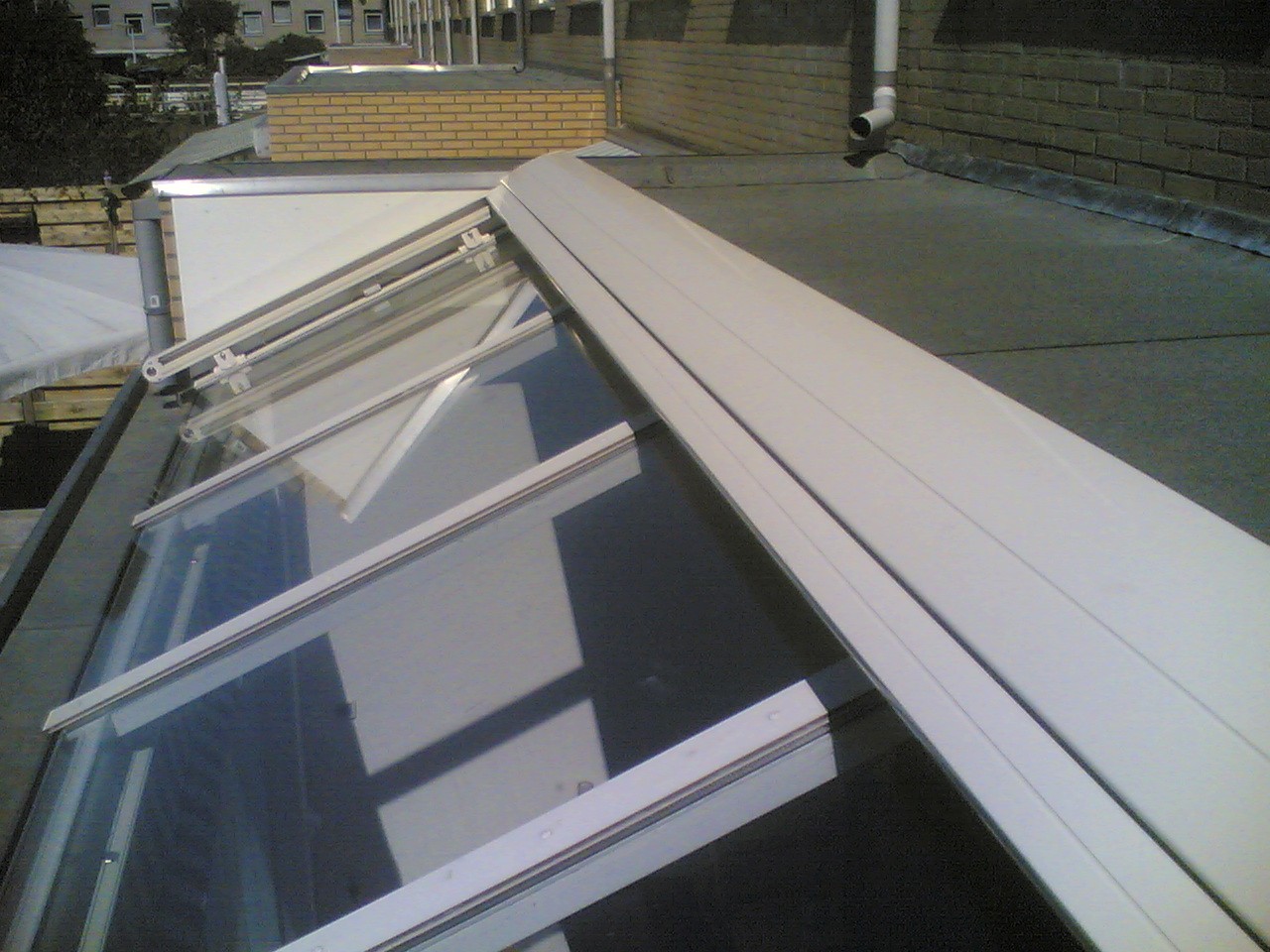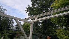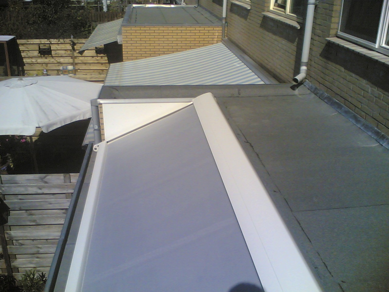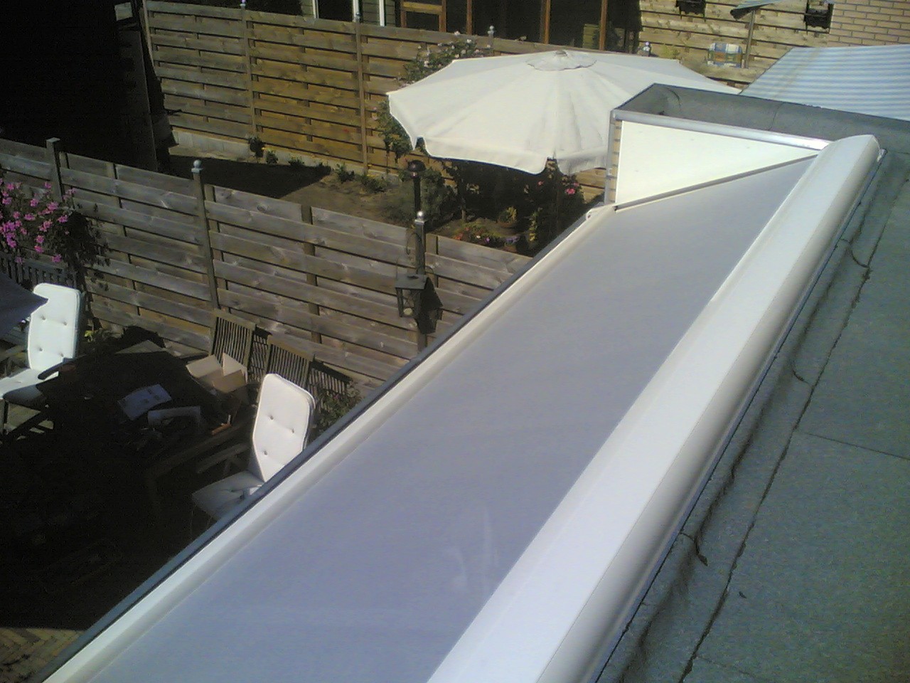 SERREDAKZONWERING Veel woningen hebben een serre om in het voor- of najaar toch te kunnen genieten van de zon. Maar in de zomer kan de temperatuur zeer hoog oplopen. Dan is serredakzonwering het aangewezen product om hier wat aan te doen. Serredakzonwering is een systeem dat in zijgeleiders loopt en op spanning gehouden wordt door touwen en veren. Hierdoor zal het zonweringsdoek bijna niet doorhangen. Er zijn vele variaties denkbaar. Het systeem is bijvoorbeeld ook op een vrijstaand frame te plaatsen. Klik op een afbeelding voor een vergroting. Garnituur kleuren (het aluminium deel) Het serredakzonnescherm is standaard voorzien van een aluminiumkleurig garnituur. Naar wens kunt u bij ons uw zonnescherm in alle "RAL" kleuren krijgen. Echter om de prijs aantrekkelijker te maken, hebben wij een "standaard" kleur voor u samengesteld wit (RAL: 9010) en créme (RAL: 9001). Standaard wordt bij ons in alle maatwerk producten Swela doek gemonteerd.